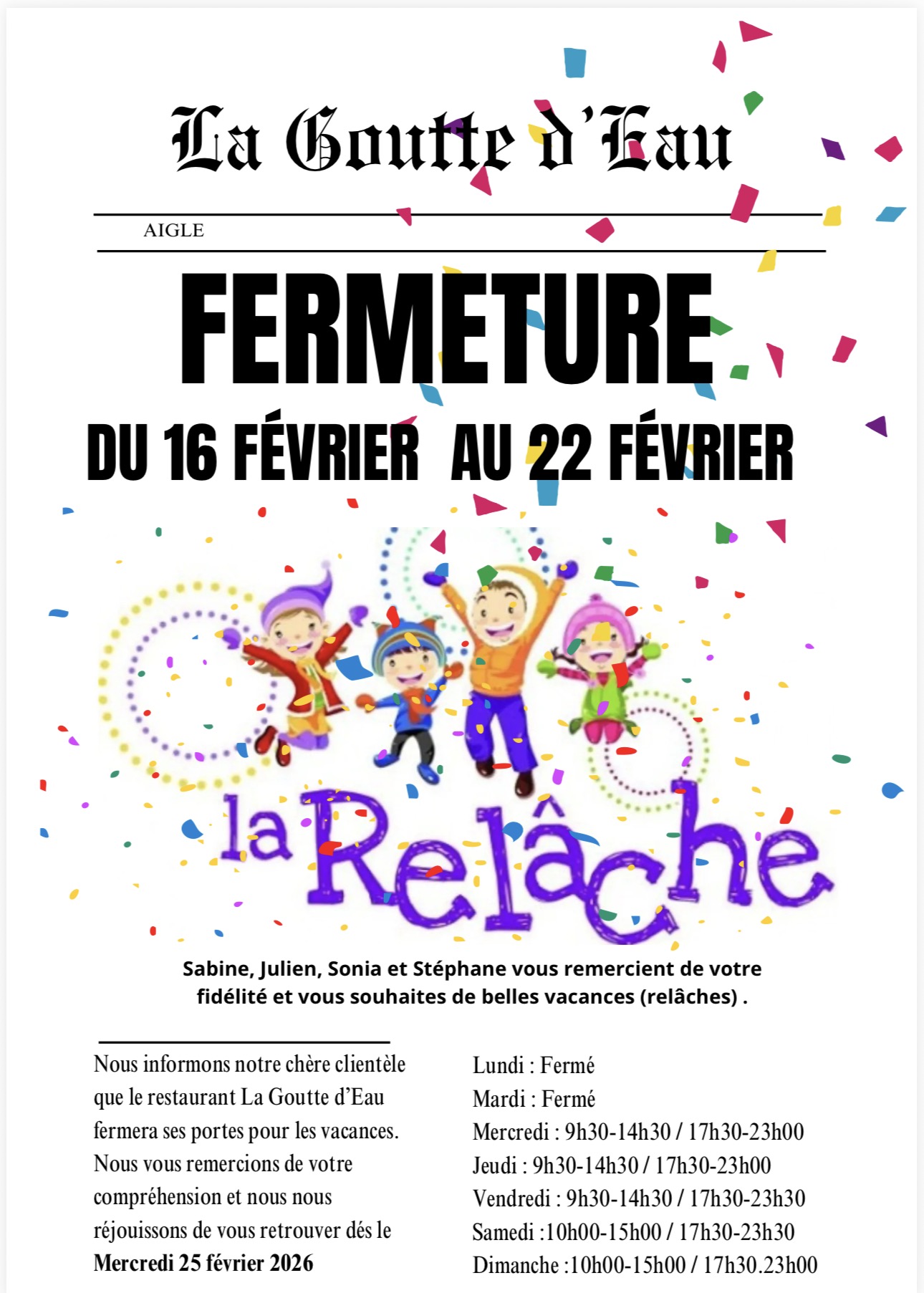 Actuellement : ouvert du mercredi au dimanche (lundi & mardi fermé)